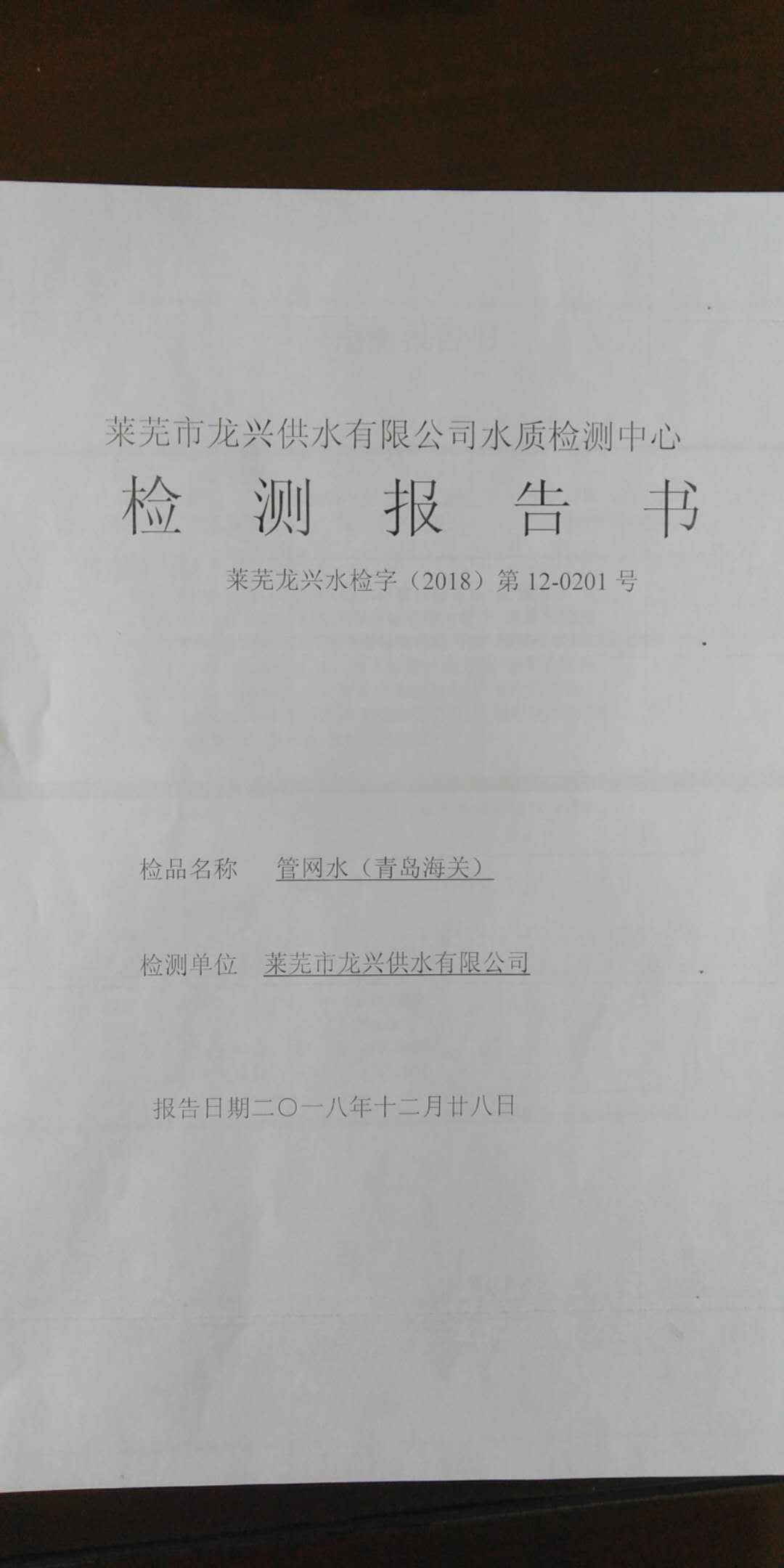 青島海關管網水水龍頭水質檢測報告