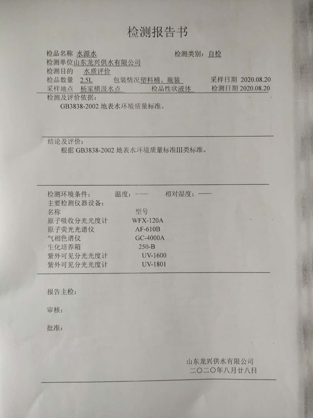 上一篇: 2020-8-30出廠水水質(zhì)日檢報告