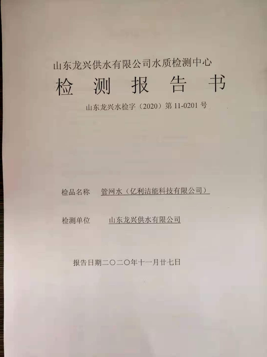 2020年11月管網水月檢報告